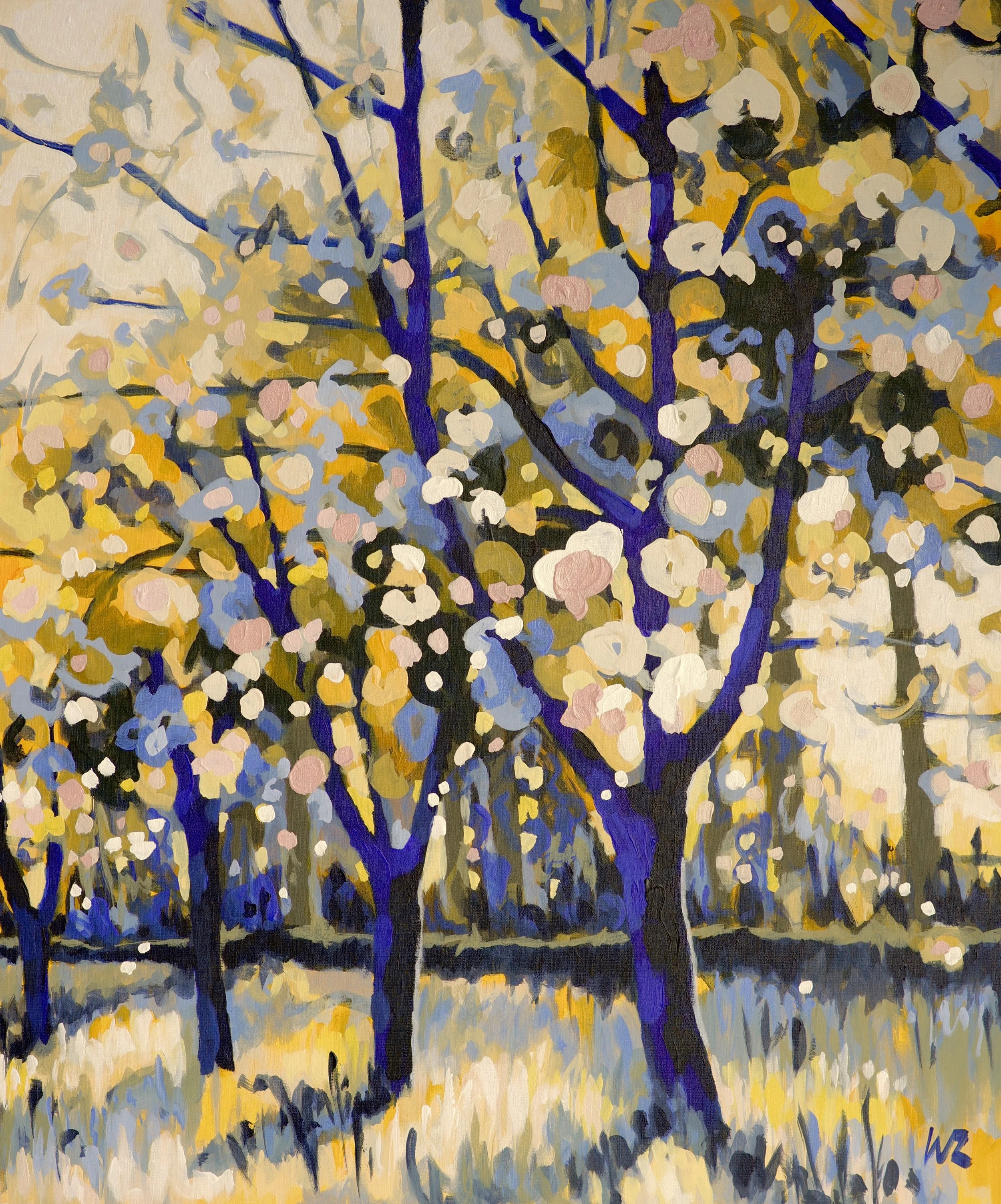 Bloeiende kersenbomen in Rhijnauwen | acryl op linnen | 120 x 100